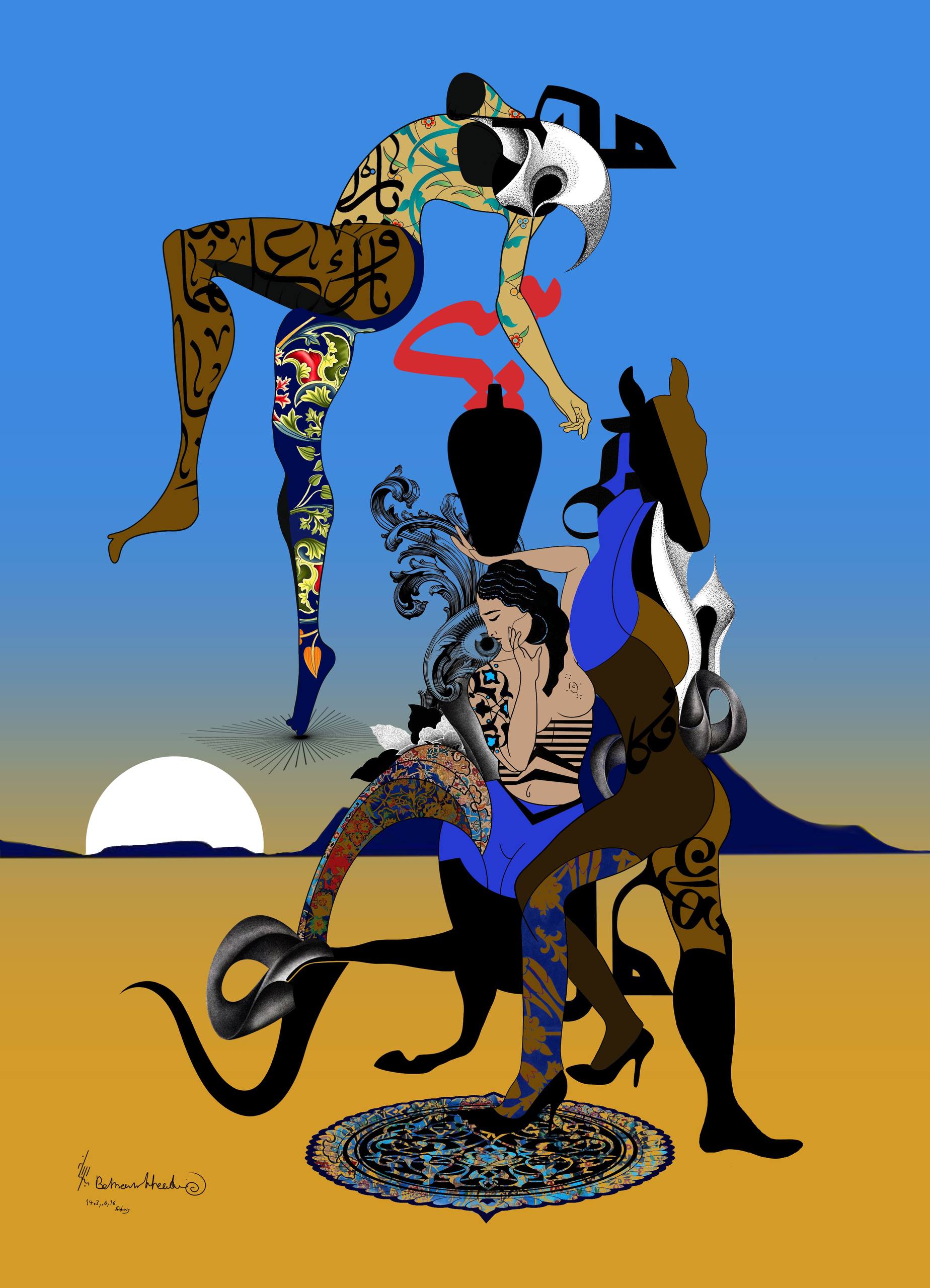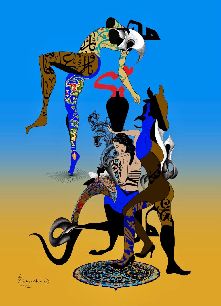 Incorporating both traditional techniques and contemporary media, his practice now extends into the NFT space—creating a dialogue between material art and digital experience within a global visual language deeply rooted in Iranian identity