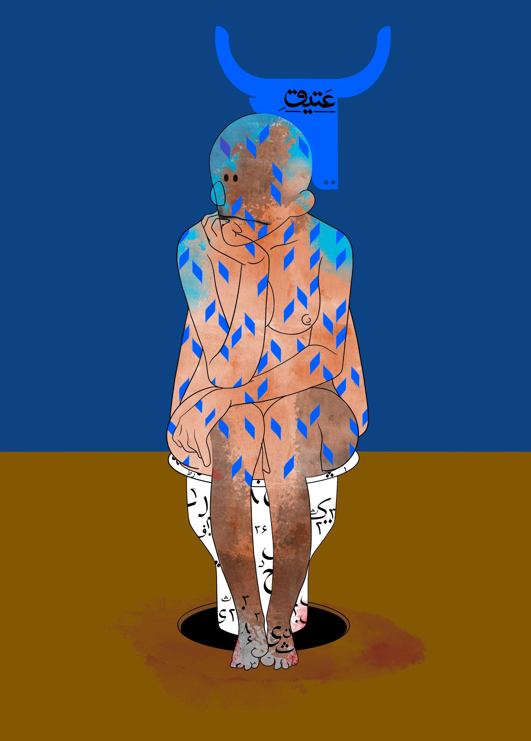 His artistic references often extend to the patterned ceramics of the fourth millennium BCE from Sialk and Susa, the monumental visual culture of the Achaemenid and Parthian periods, and ancient Old Pahlavi scripts dating back more than three millennia